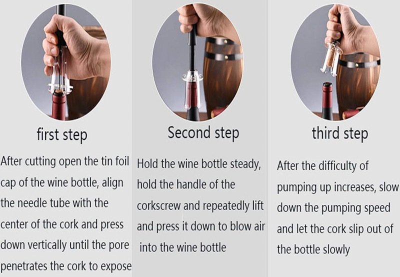 Ανοιχτήρι μπουκαλιών κρασιού – τιρμπουσόν με εργονομικό μηχανισμό πίεσης αέρος που αφαιρεί τον φελλό με ελάχιστες απλές κινήσεις, χωρίς κόπο.