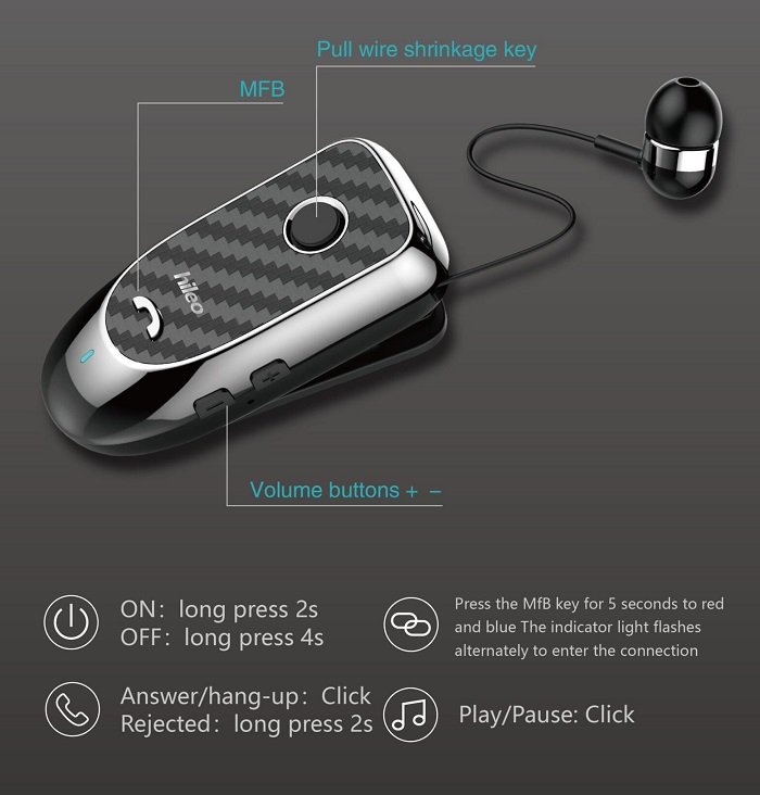 Ακουστικό Handsfree Bluetooth με τεχνολογία Noise cancellation για ελαχιστοποίηση θορύβων και απόλυτη ηχομόνωση.