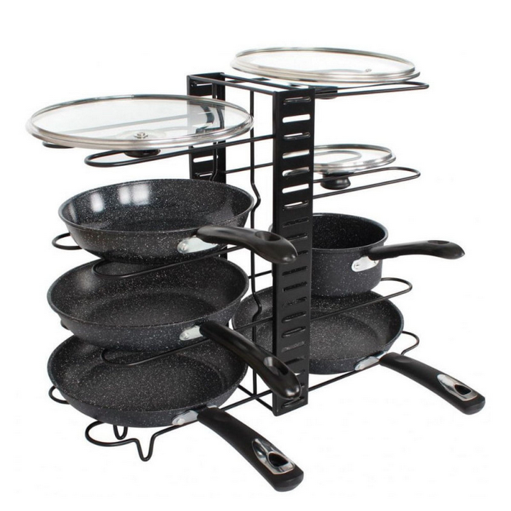 Βάση οργάνωσης σκευών κουζίνας διπλή, μεταλλική, με διαχωριστικά που μπορούν να τοποθετηθούν ανάλογα με το μέγεθος θέσεως που επιθυμείτε.