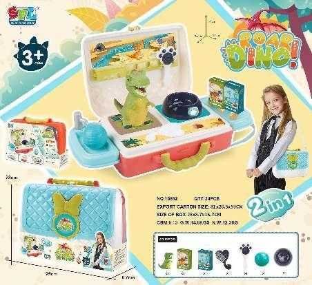 Σετ φροντίδας Δεινόσαυρου σε υπέροχο σχεδιασμό με πολλά αξεσουάρ, σε πρακτικό βαλιτσάκι μεταφοράς που μετατρέπεται πανεύκολα σε επιτραπέζιο πάγκο παιχνιδιού.