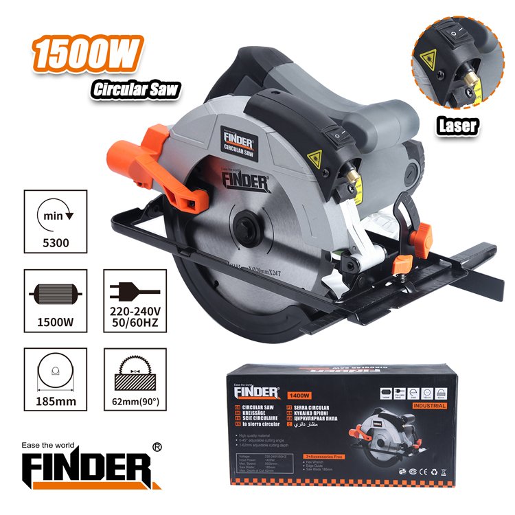 Φορητό δισκοπρίονο FINDER εξαιρετικής απόδοσης με εύκολη χρήση και άνετη αντιολισθητική λαβή για γρήγορες και ακριβής κοπές σε ξύλο, μοριοσανίδες, συνθετική ύλη (PVC) και ελαφριά δομικά υλικά.
