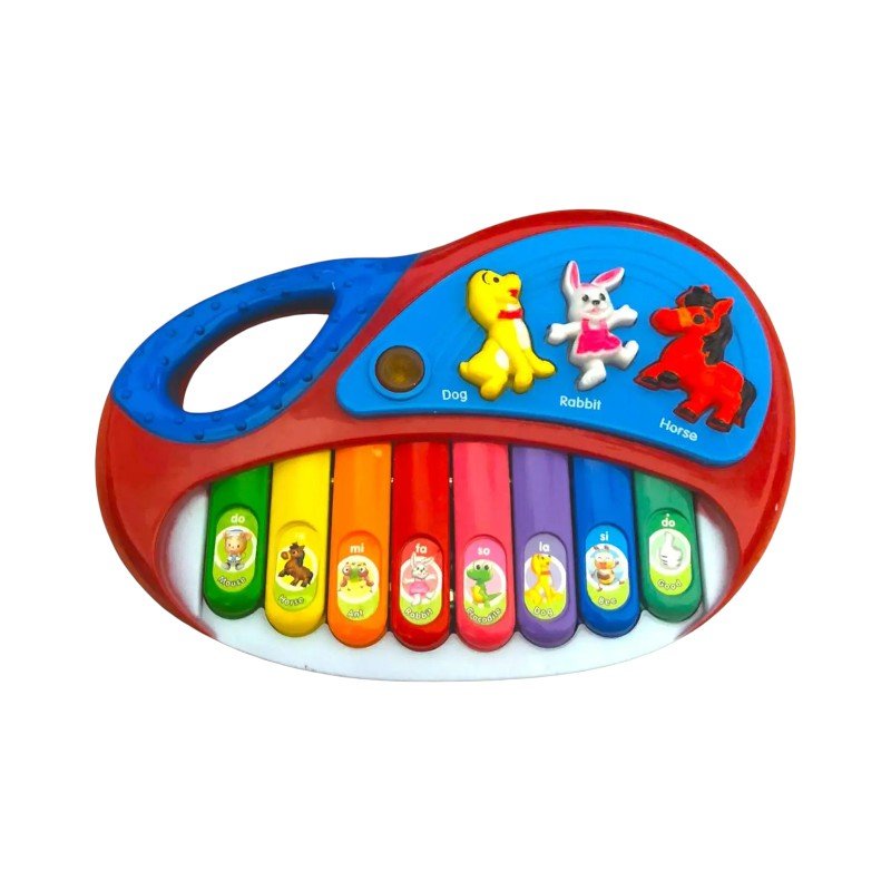 Παιδικό εκπαιδευτικό πιάνο, σε υπέροχο πολύχρωμο σχεδιασμό, με πολλαπλές λειτουργίες και εκπαιδευτικούς ήχους από ζωάκια, για τους μικρούς λάτρεις της μουσικής.