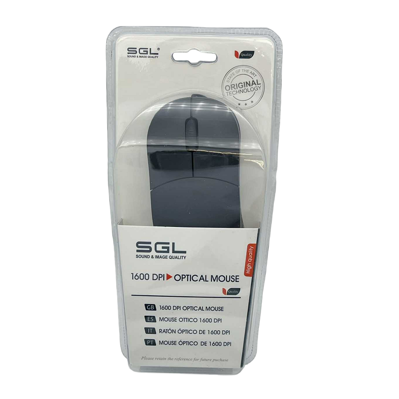 Ενσύρματο ποντίκι Η/Υ της SGL, οπτικό, με εργονομικό design και υψηλές αποδόσεις, ιδανικό για καθημερινή χρήση. Max 1600 DPI. Αριθμός πλήκτρων: 3. Μήκος καλωδίου: 1.2m.