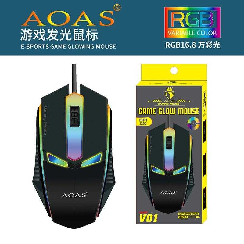 To ποντίκι Aoas V01 είναι ένα gaming ποντίκι σχεδιασμένο και για τα δύο χέρια, με οπτικό αισθητήρα και ανάλυση 2400 DPI. Διαθέτει 3 κουμπιά και φωτισμό RGB που μπορεί να πάρει διάφορες αποχρώσεις.