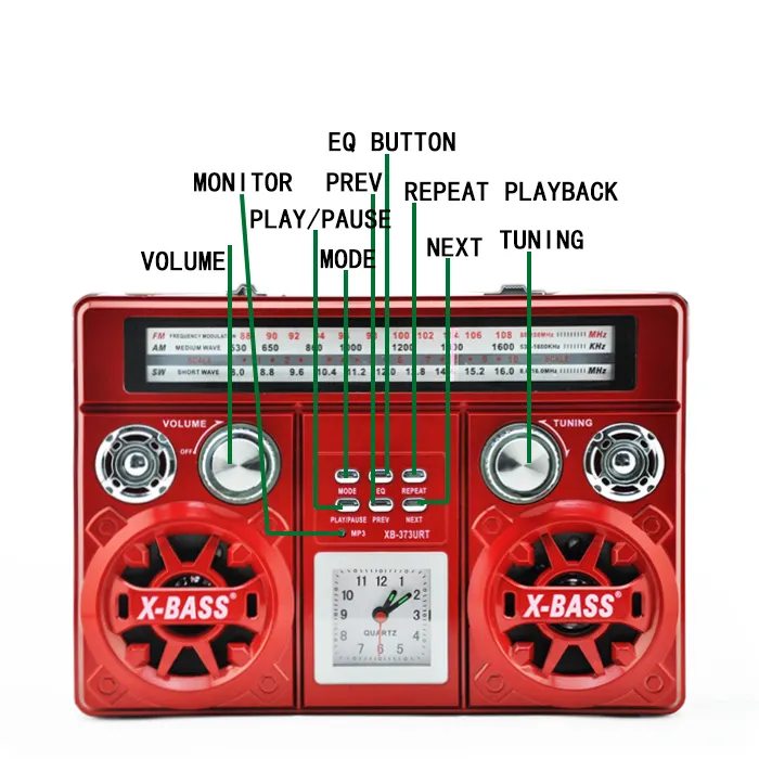 Επαναφορτιζόμενο ραδιόφωνο – XB373BT – Waxiba – 003736 – Red