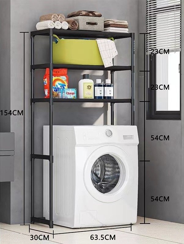 Επιδαπέδια ραφιέρα μπάνιου μεταλλική, συναρμολογούμενη, με 3 πρακτικά ράφια, ιδανική για οργάνωση και εξοικονόμηση χώρου καθώς τοποθετείται επάνω από το πλυντήριό σας. Διαστάσεις: 63 × 30 x 154cm.