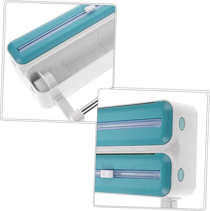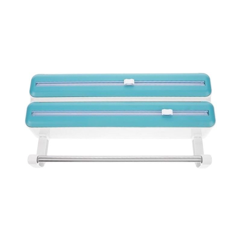 Επιτοίχια βάση ρολού κουζίνας με 2 ενσωματωμένες θήκες για μεμβράνη & αλουμινόχαρτο, με κόφτη για άμεση και εύκολη χρήση.