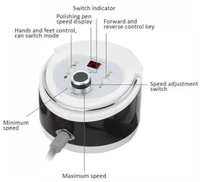 Επαγγελματικός τροχός νυχιών για μανικιούρ-πεντικιούρ με βάση στήριξης, με δεξιόστροφη και αριστερόστροφη λειτουργία και πεντάλ ποδιού.