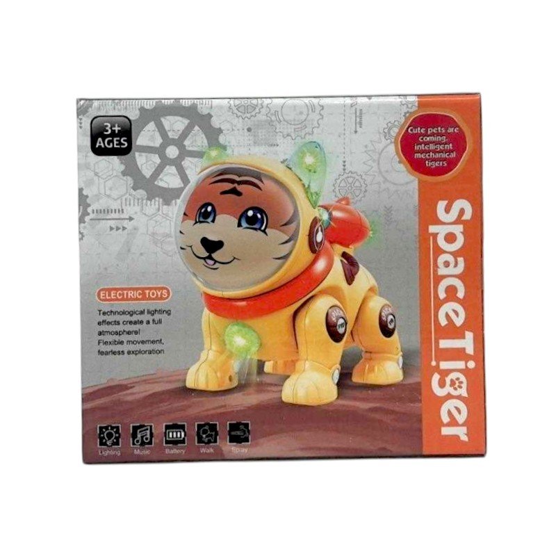Ηλεκτρονικό ζωάκι τίγρης αστροναύτης, που περπατάει και κάνει ήχους, με πολύχρωμο φωτισμό LED. Ανακάλυψε όλα του τα κόλπα και πηγαίνετε μαζί ατελείωτες βόλτες!