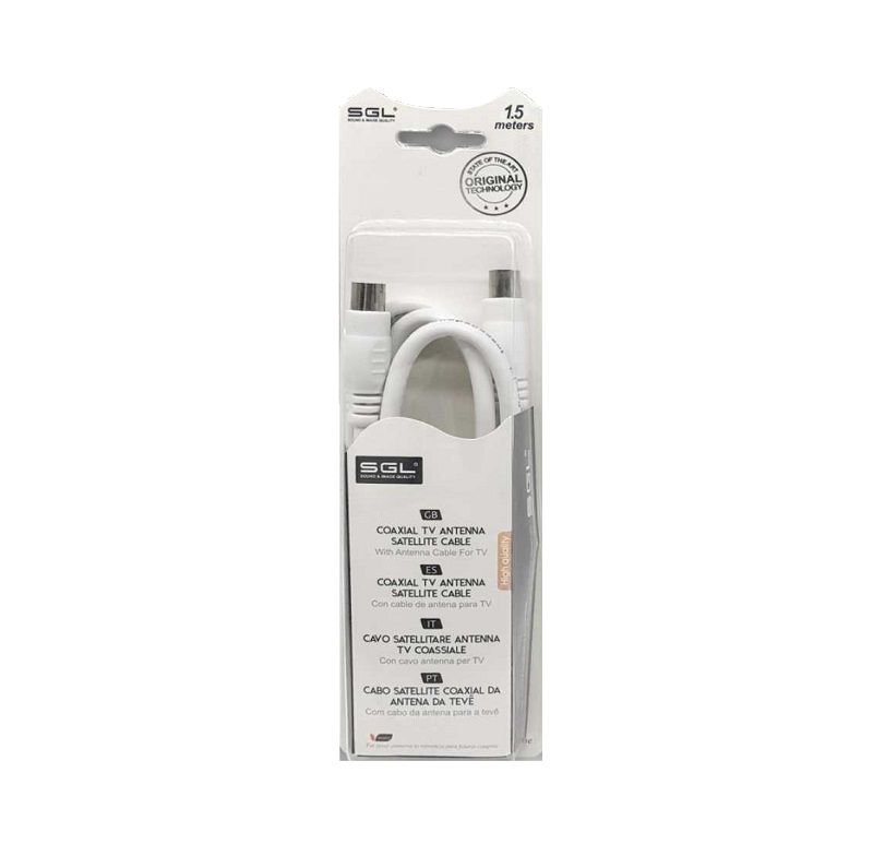 Καλώδιο κεραίας τηλεόρασης 722BC, μήκους 1.5m, λευκό, θηλυκό-αρσενικό.