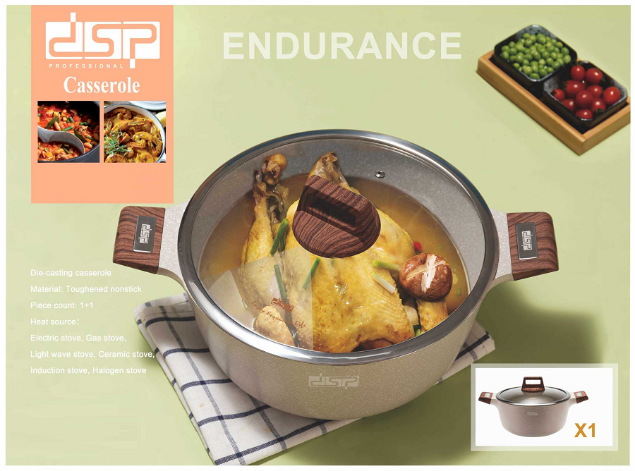 Κατσαρόλα υψηλής ποιότητας κατασκευής από την DSP, με ισχυρή αντικολλητική επίστρωση και γυάλινο καπάκι.