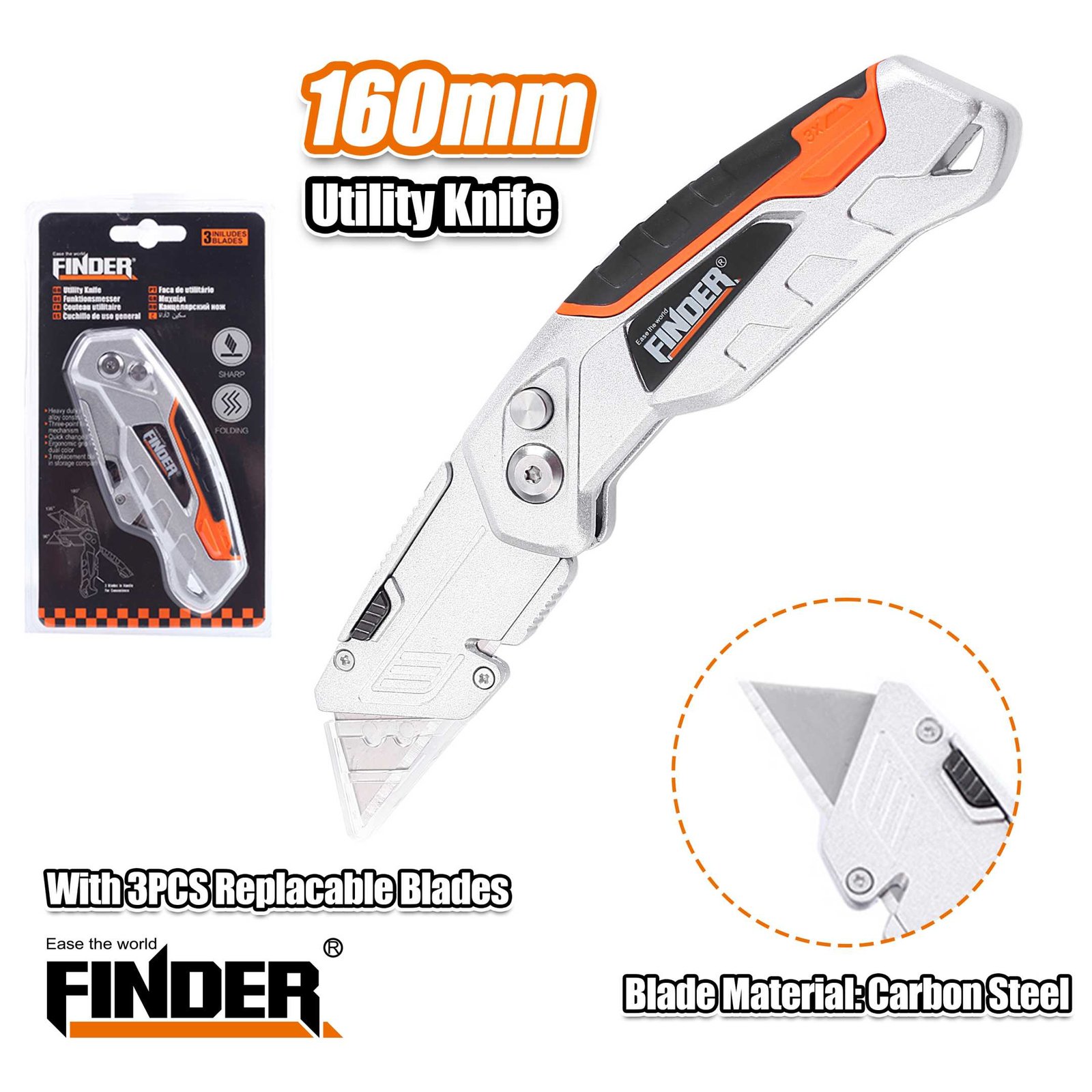 Κοπίδι 3 in 1, Finder, πτυσσόμενο, με εργονομική λαβή και 3 διαφορετικές λεπίδες από ατσάλι, ενσωματωμένες σε ειδική θήκη πάνω στο κοπίδι.