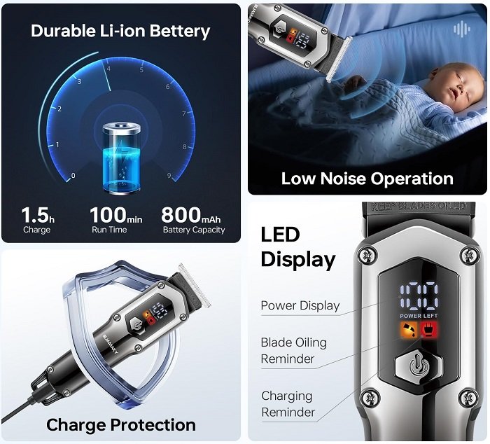 Επαναφορτιζόμενη κουρευτική μηχανή σε εντυπωσιακό σχεδιασμό, με λεπίδα ακριβείας από ανοξείδωτο ατσάλι, με μεγάλη αυτονομία μπαταρίας, εργονομικό design και αξεσουάρ, κατάλληλη για κάθε είδους περιποίηση σε μαλλιά, γένια και σώμα.