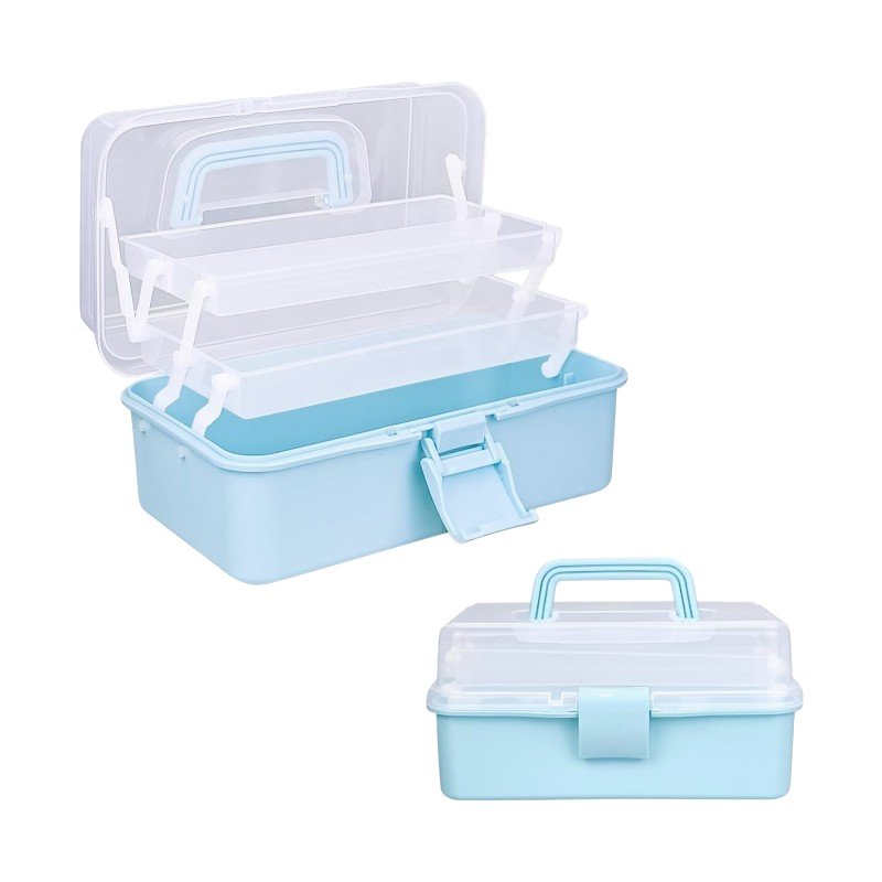 Πλαστικό κουτί οργάνωσης καλλυντικών και μπιζού, με πολλαπλές θήκες οργάνωσης, χειρολαβή και εργονομική σχεδίαση 3 επιπέδων για εξοικονόμηση χώρου.