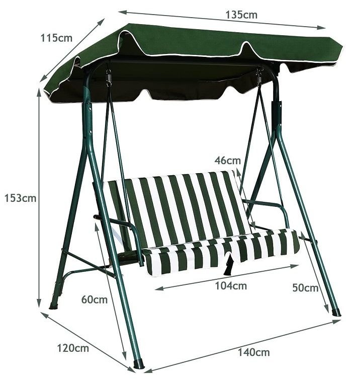 Κούνια κήπου διθέσια με ισχυρό μεταλλικό σκελετό και προστατευτική τέντα. Ιδανική για απολαυστικες στιγμές χαλάρωσης στο μπαλκόνι σας, την βεράντα, τον κήπο, το εξοχικό σας.