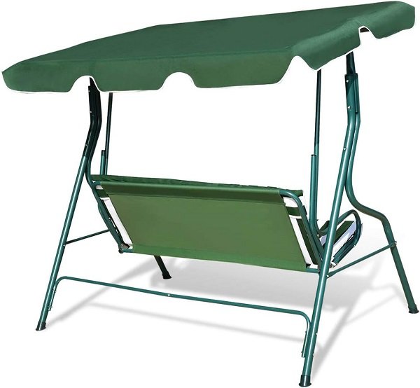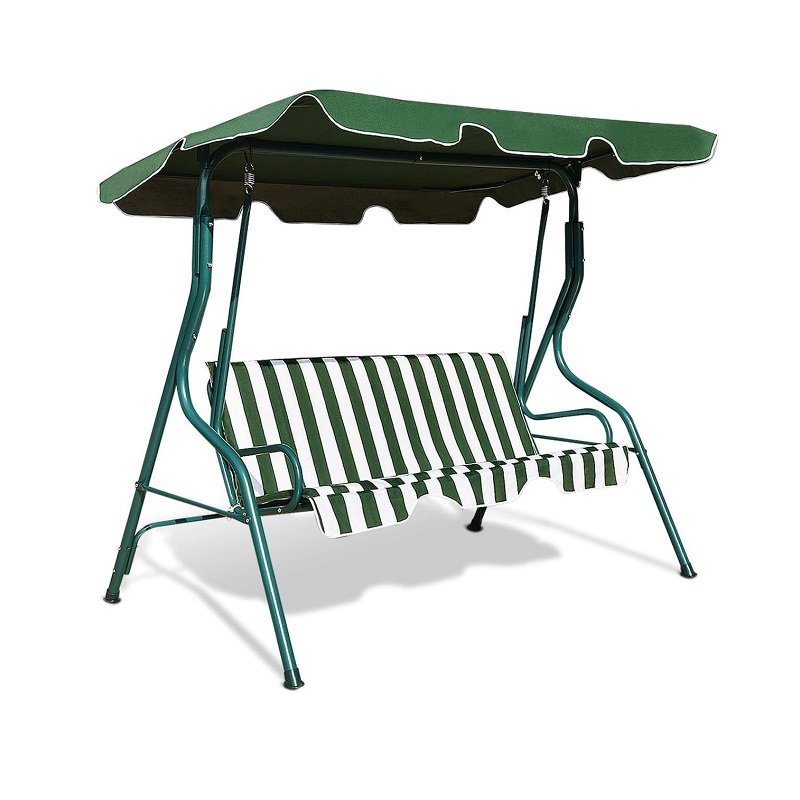 Κούνια κήπου τριθέσια με ισχυρό μεταλλικό σκελετό και προστατευτική τέντα. Ιδανική για απολαυστικές στιγμές χαλάρωσης στο μπαλκόνι σας, την βεράντα, τον κήπο, το εξοχικό σας.