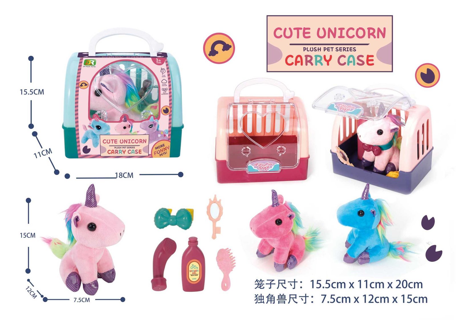 Λούτρινο ζωάκι μονόκερος με πλήρες σετ αξεσουάρ περιποίησης και φροντίδας και με υπέροχο σπιτάκι-τσαντάκι μεταφοράς για να το έχεις παντού μαζί σου.