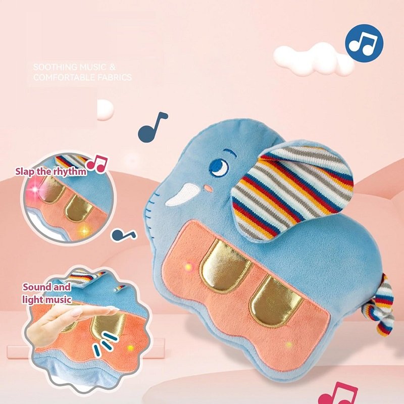Λούτρινο βρεφικό παιχνίδι πιάνο ελεφαντάκι με ήχους και με απαλή, υποαλλεργική επένδυση, απόλυτα φιλική στο δέρμα.