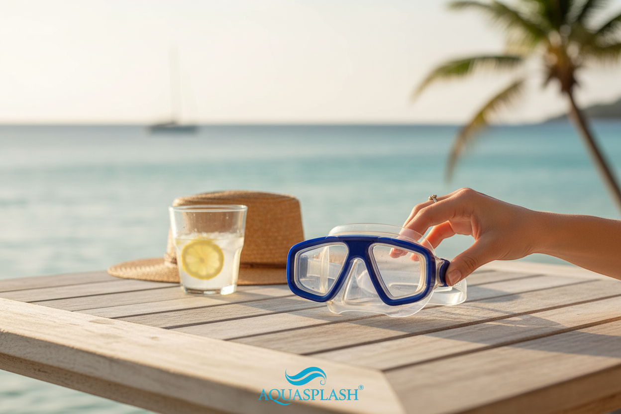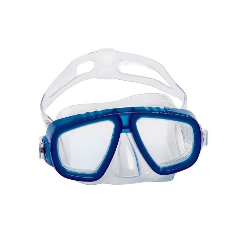 Μάσκα θαλάσσης πλαστική, με πλήρη κάλυψη μύτης, με μαλακή υποαλλεργική σιλικόνη περιμετρικά και ρυθμιζόμενο λουρί κεφαλής για άνετη, σταθερή εφαρμογή και απόλυτη στεγανότητα.