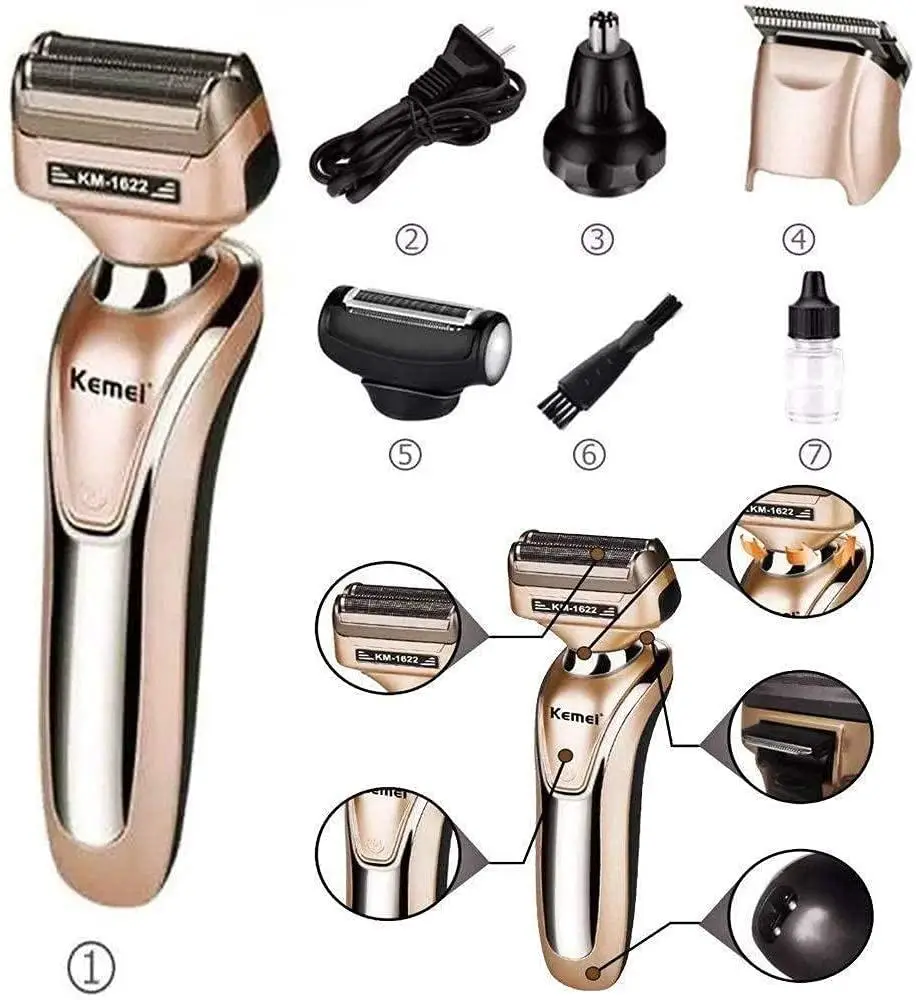 H επαναφορτιζόμενη ξυριστική μηχανή KM-1622 της Kemei ξυρίζει, κουρεύει, τριμάρει και περιποιείται! Αποτελεί ένα πλήρες εργαλείο για κάθε είδους περιποίηση. Πρακτική και ελαφριά, με εργονομική λαβή για εύκολη και ξεκούραστη χρήση.