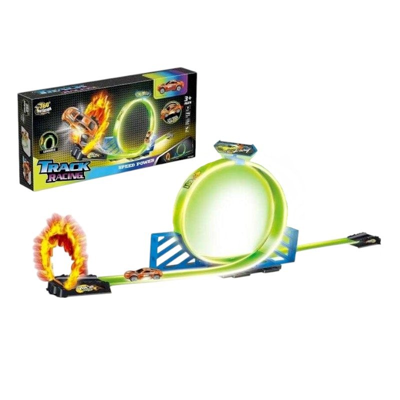 Αυτοκινητόδρομος πίστα με περιστροφή 360 μοιρών, εκτοξευτή και αξεσουάρ.