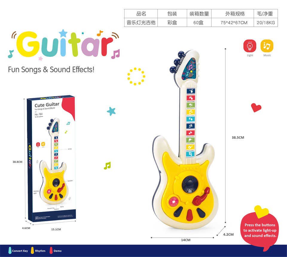 Παιδική ηλεκτρονική κιθάρα με πολλούς διαφορετικούς μουσικούς ήχους και φωτισμό, σε υπέροχο πολύχρωμο σχεδιασμό.
