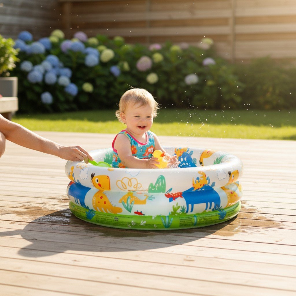 Παιδική φουσκωτή πισίνα κήπου με σχέδια, για ατελείωτα καλοκαιρινά παιχνίδια στο νερό! Μπορεί να τοποθετηθεί στον κήπο σας, στη βεράντα, ακόμη και στο μπαλκόνι σας. Κατασκευασμένη από ανθεκτικό, μη τοξικό PVC.
