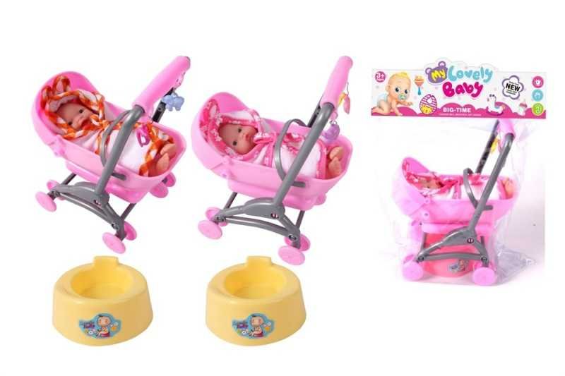 Μικρό πλαστικό καροτσάκι με κούκλα, σε υπέροχο mini σχεδιασμό, ιδιαίτερα ανθεκτικό για ατελείωτες βόλτες και παιχνίδι με την κούκλα σου.