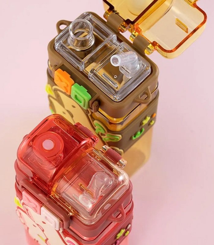 Διαθέτει διπλό καπάκι με καλαμάκι και επιστόμιο.