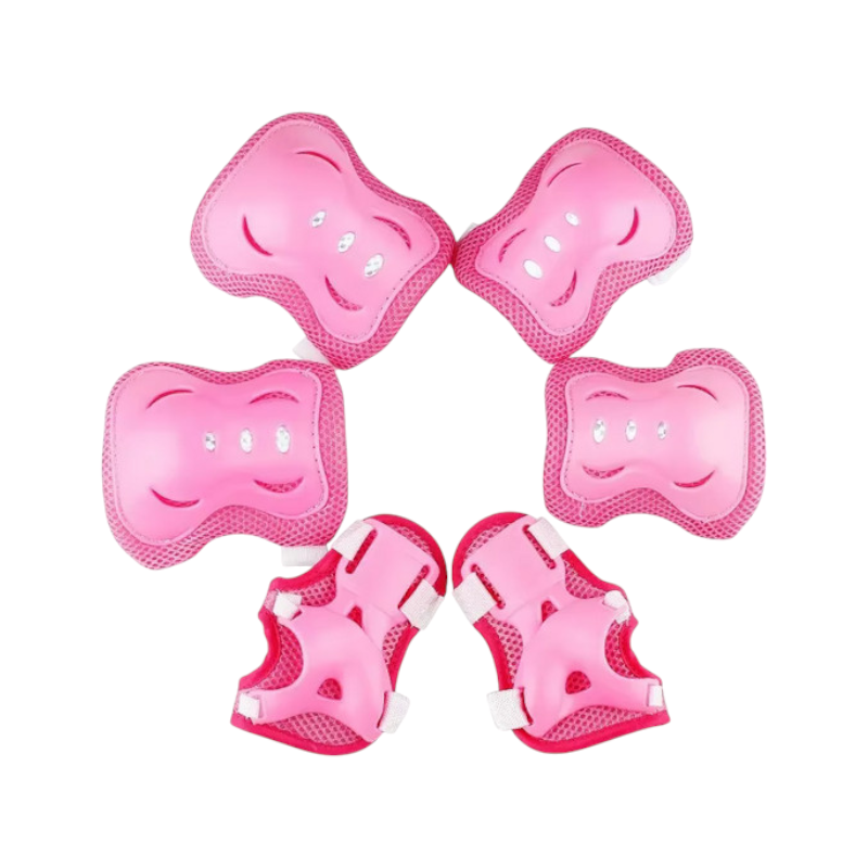 Πλήρες παιδικό σετ 6 τεμαχίων με προστατευτικά γονάτων, αγκώνων και καρπών, ιδανικό για κάθε είδους αθλητικές δραστηριότητες: ποδηλασία, skatebord, rollers, πατίνι, ομαδικά αθλήματα κτλ. Διαθέτουν σκληρό ανθεκτικό κάλυμμα που προστατεύει πλήρως από χτυπήματα και μαλακή εσωτερική επένδυση που απορροφά τους κραδασμούς και εφαρμόζει σταθερά και με άνεση, χωρίς ενοχλήσεις.