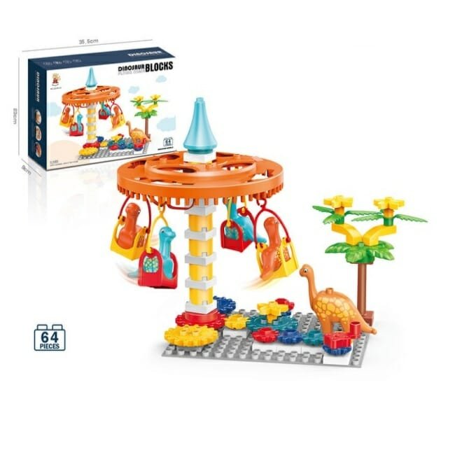 Παιχνίδι συναρμολογούμενο DIY με θέμα Λουνα Παρκ δεινοσαύρων. Στήσε το Λούνα Παρκ και βάλε τα δεινοσαυράκια σου να παίξουν στα παιχνίδια!