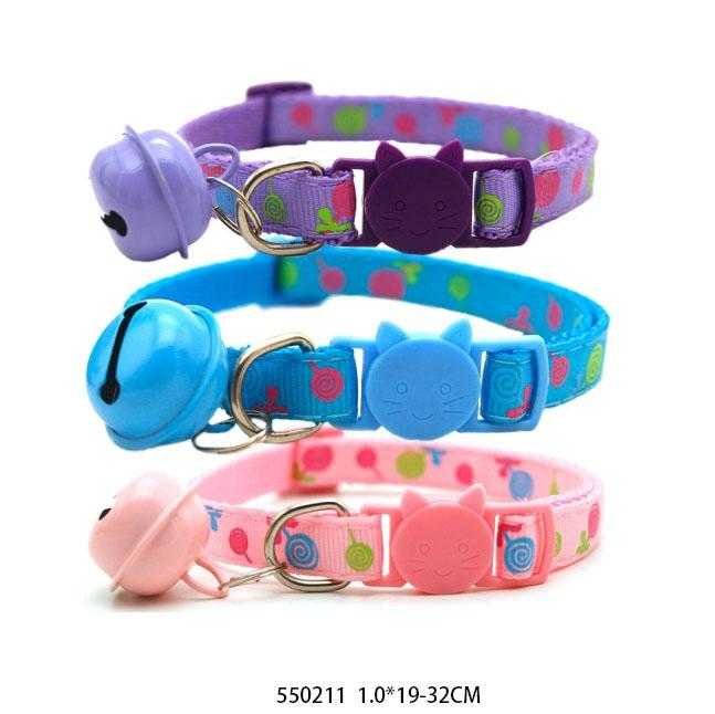 Περιλαίμιο-Κολάρο γάτας με κουδουνάκι και κούμπωμα με κλιπ. Διαθέτει ρυθμιζόμενο μήκος 19-32cm και πλάτος 1cm.