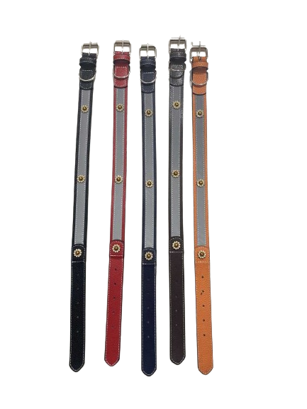 Περιλαίμιο-Κολάρο σκύλου με σχέδια και κούμπωμα ζώνης. Διαθέτει ρυθμιζόμενο μήκος έως 56cm και πλάτος 3cm. Διαθέτει επίσης κρικάκι ώστε να κρεμάσετε την ταυτότητα του κατοικιδίου σας ή αξεσουάρ. Διαθέσιμο σε διάφορα χρώματα – Σημειώστε το χρώμα προτίμησής σας στις σημειώσεις παραγγελίας – Αποστολή κατόπιν διαθεσιμότητας.