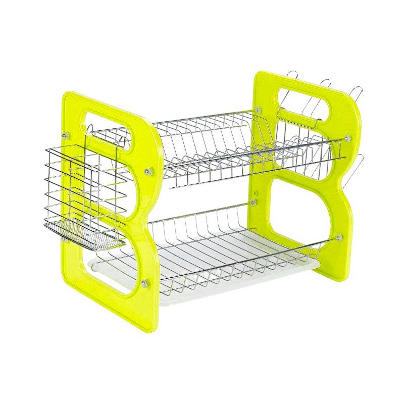 Πιατοθήκη αποστράγγισης διώροφη πλαστική με inox σκελετό, σε πρακτικό σχεδιασμό, με θήκη μαχαιροπίρουνων και βάσεις ποτηριών.