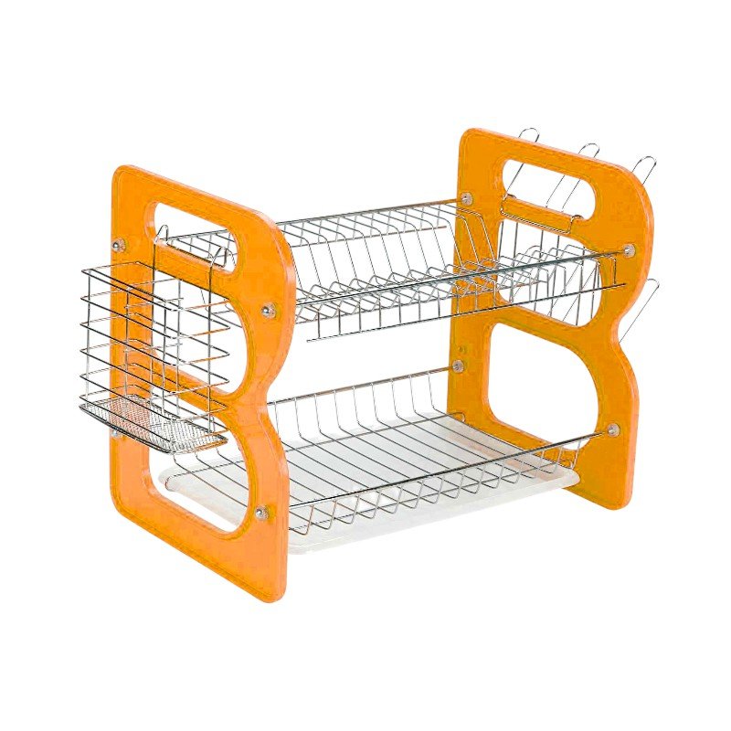 Πιατοθήκη αποστράγγισης διώροφη πλαστική με inox σκελετό, σε πρακτικό σχεδιασμό, με θήκη μαχαιροπίρουνων και βάσεις ποτηριών.
