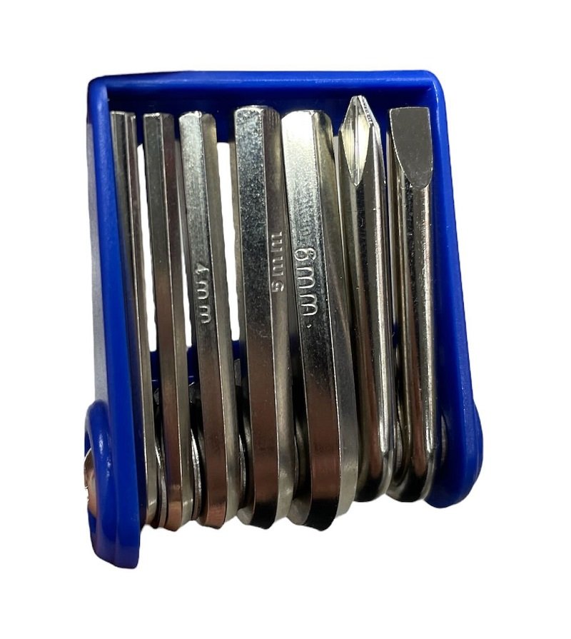 Πολυεργαλείο ποδηλάτου με 7 διαφορετικές κεφαλές και πτυσσόμενο σχεδιασμό για εύκολη χρήση και μεταφορά.