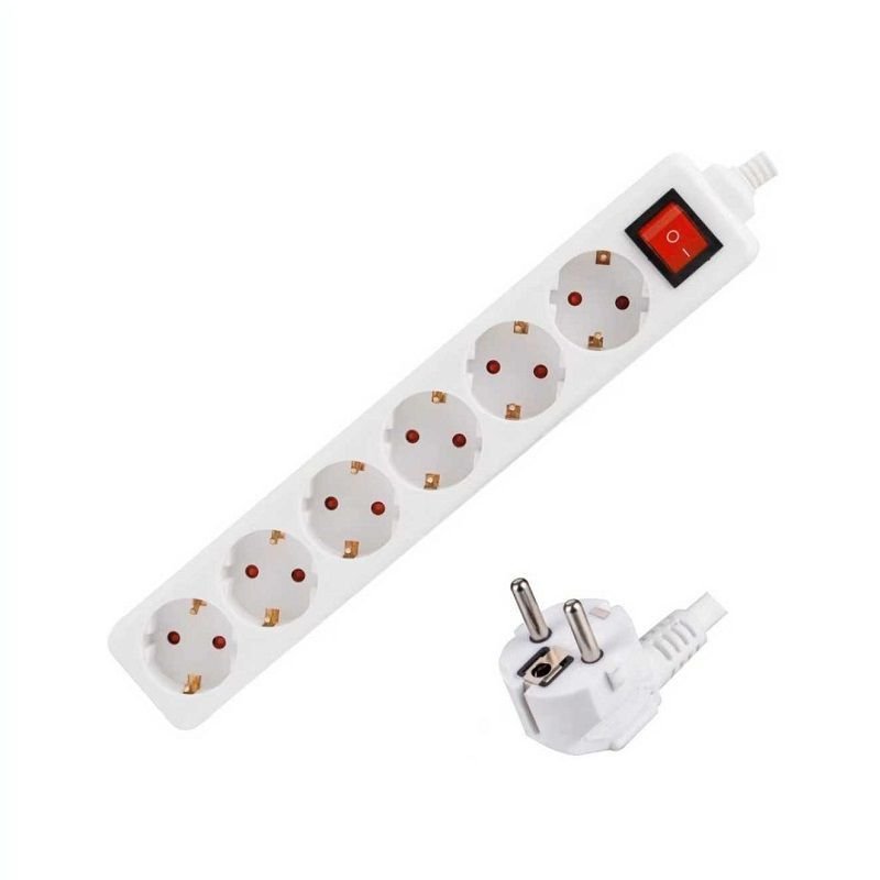 Πολύπριζο σούκο 6 θέσεων με διακόπτη και καλώδιο μήκους 3m, λευκό.