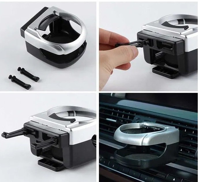 Ποτηροθήκη αυτοκινήτου πλαστική, με πρακτικό σχεδιασμό και εύκολη, σταθερή τοποθέτηση στις περσίδες των αεραγωγών του αυτοκινήτου, χάρη στα ειδικά στηρίγματα που διαθέτει.