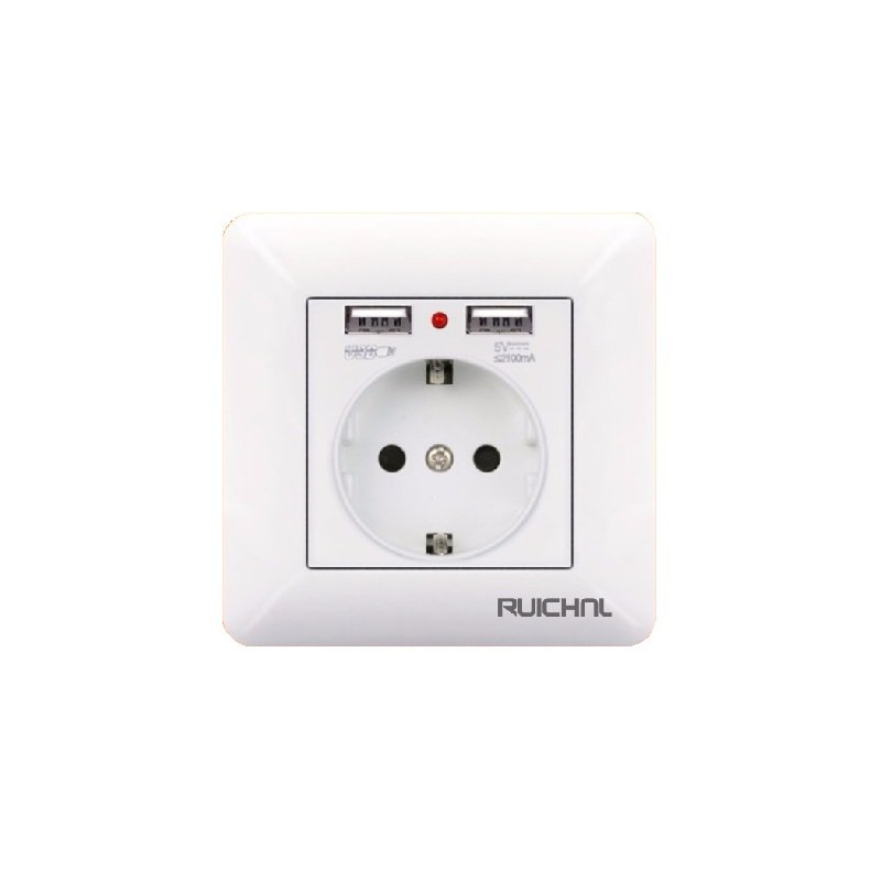 Πρίζα τοίχου 16A, με 1 πρίζα σούκο και 2 θύρες USB.