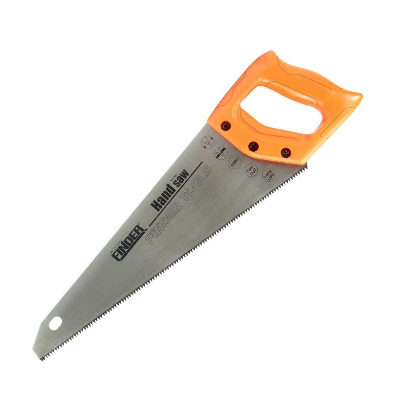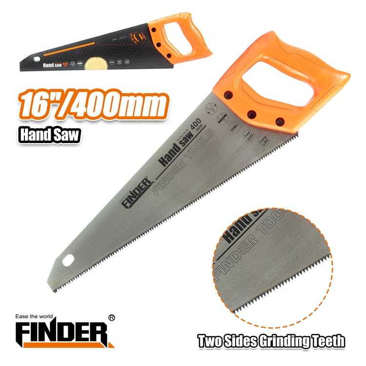 Πριόνι ξύλου Finder, με εργονομική λαβή. Μέγεθος: 16″/400mm, Υλικό: Mn, Hardness: 50-55HRC, Πάχος λεπίδας: 0.9mm, TPI: 7TPI, Διπλής όψης-Two Sides Grinding Teeth.