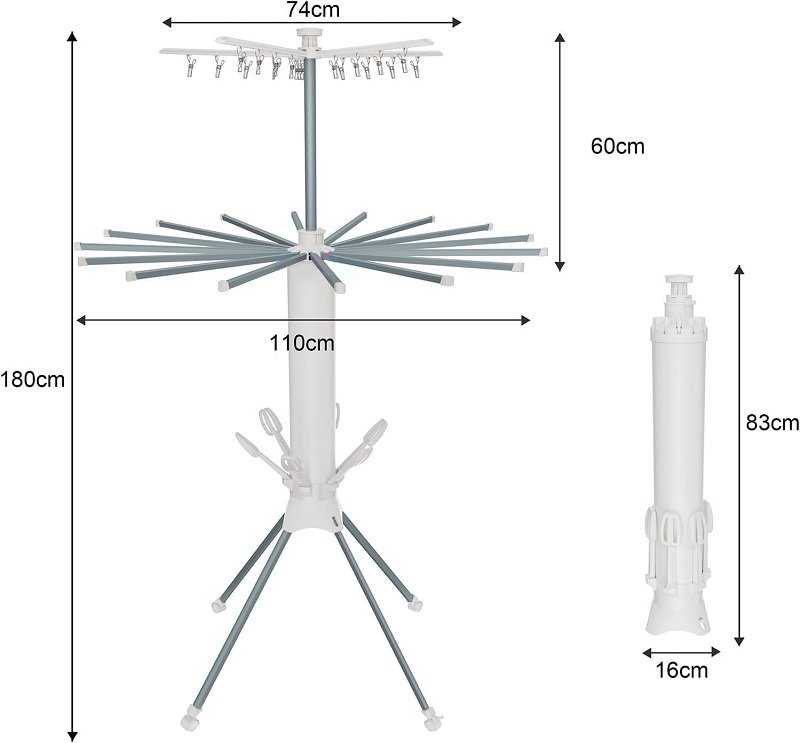 Πτυσσόμενη κρεμάστρα δαπέδου και απλώστρα ρούχων πολλαπλών χρήσεων, με μεταλλικό σκελετό, ροδάκια μετακίνησης και εργονομικό σχεδιασμό που αναδιπλώνεται για εξαιρετικά εύκολη αποθήκευση και μεταφορά χωρίς να καταλαμβάνει χώρο.