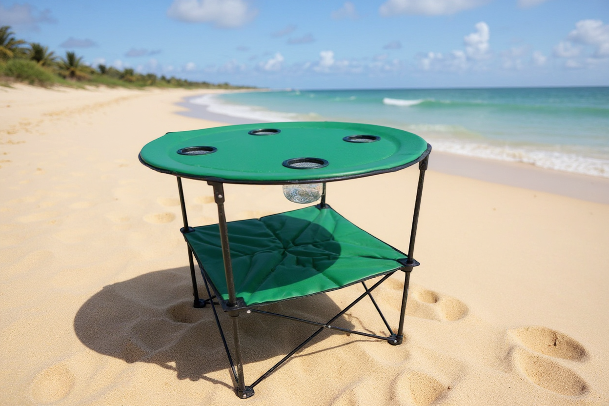 Πτυσσόμενο τραπεζάκι camping, με ανθεκτικό, αδιάβροχο ύφασμα που καθαρίζεται εύκολα. Διαθέτει 4 ποτηροθήκες και δεύτερο ράφι στο κάτω μέρος.