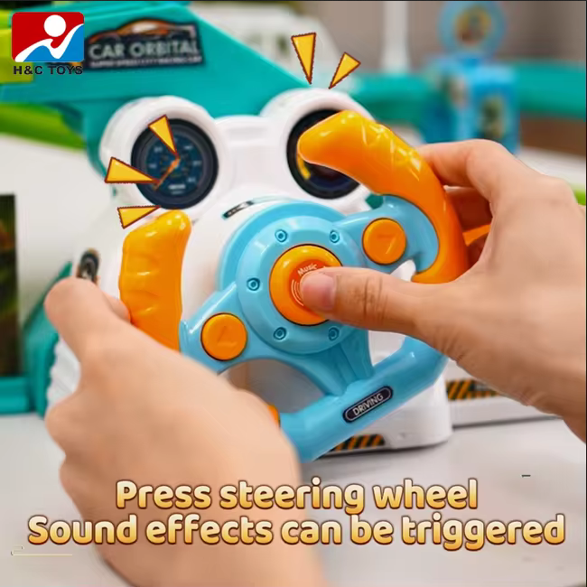 Σετ αυτοκινητόδρομος – Parking με τιμόνι και τσουλήθρα για τρελά κόλπα, σε υπέροχο πολύχρωμο σχεδιασμό, με ήχους, για ένα παιχνίδι που θα σε συναρπάσει.