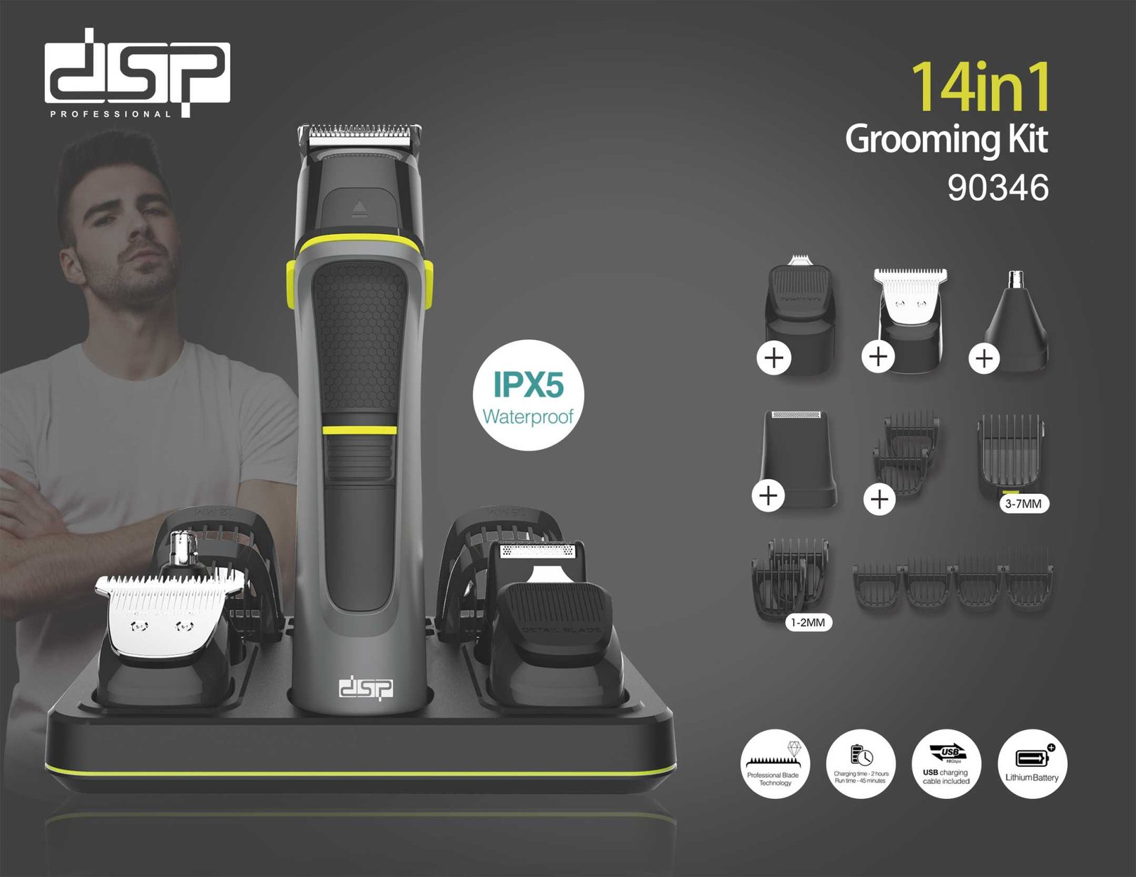 Η Επαναφορτιζόμενη κουρευτική μηχανή 14 σε 1 της DSP είναι μια ολοκληρωμένη λύση για την περιποίηση των μαλλιών, του προσώπου και του σώματος.