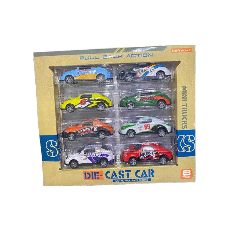 Μεταλλικά αυτοκινητάκια, σετ 8 τεμαχίων, σε διάφορα πολύχρωμα σχέδια και ποικιλία σχεδιασμού, με Pull Back.