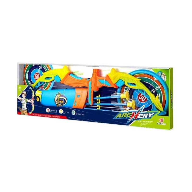 Παιδικό σετ τοξοβολίας με ταμπλό στόχου και βέλη με βεντούζα. Εντυπωσιακός σχεδιασμός, ανθεκτική κατασκευή και εργονομική λαβή για να εξασκήσεις τις ικανότητές σου και να γίνεις ο καλύτερος του αθλήματος!