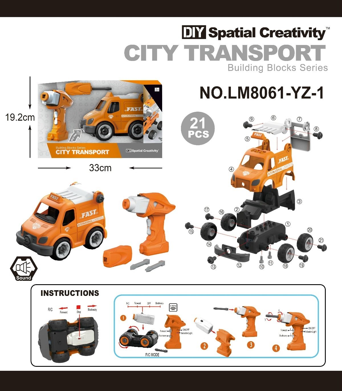 Εκπαιδευτικό παιχνίδι με όχημα πόλης, με κίνηση και δυνατότητα συναρμολόγησης-αποσυναρμολόγησης για ένα δημιουργικό παιχνίδι που εξασκεί τη λεπτή κινητικότητα.