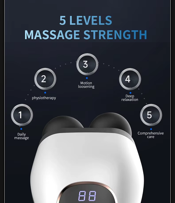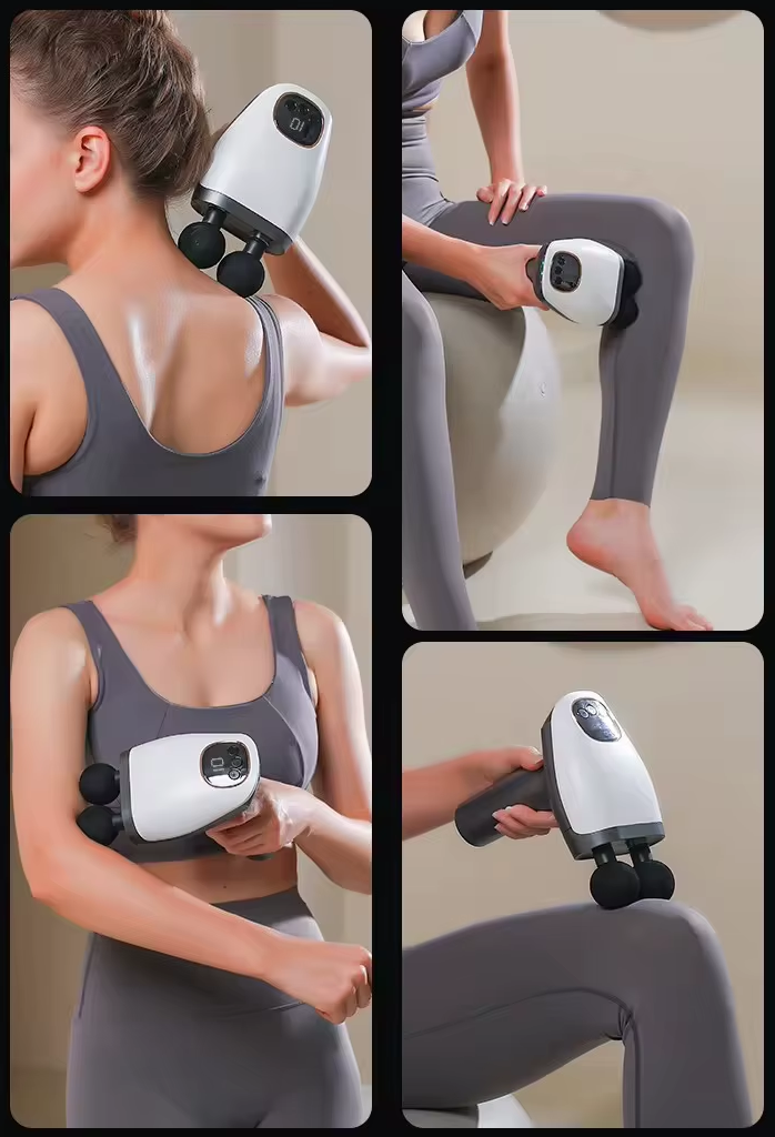 Επαναστατική συσκευή μασάζ και μυοχαλάρωσης Fascial Gun με διπλή στρογγυλή κεφαλή με μαλακή αφρώδη επένδυση για εφαρμογή σε όλα τα σημεία του σώματος που επιθυμείτε.