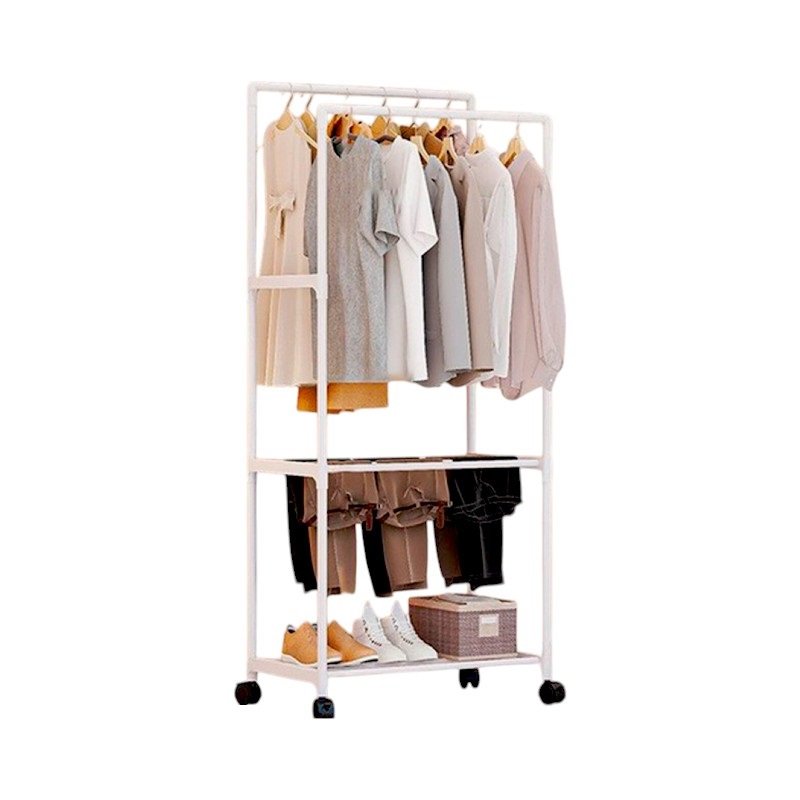 Τροχήλατη κρεμάστρα δαπέδου διπλή με 2 ράφια πολλαπλών χρήσεων, ιδανική ως έπιπλο εισόδου ή για την οργάνωση των ρούχων στο δωμάτιό σας .