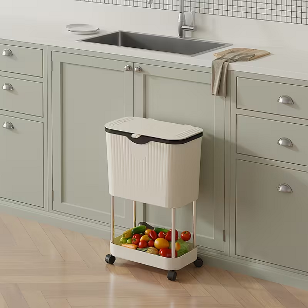 Tροχήλατο καρότσι οργάνωσης κουζίνας 2 επιπέδων με ενσωματωμένο κάδο απορριμμάτων.